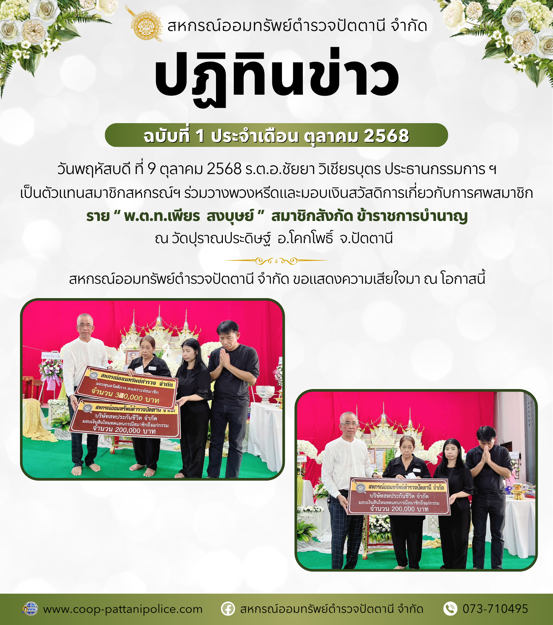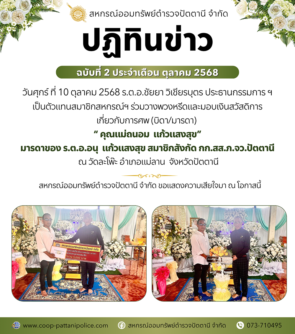10 ต.ค. 2568 | ประกาศ เรื่อง สหกรณ์ฯ แจ้งหยุดทำการ 1 วัน (13 ตุลาคม 2568) (อ่าน:14) | |