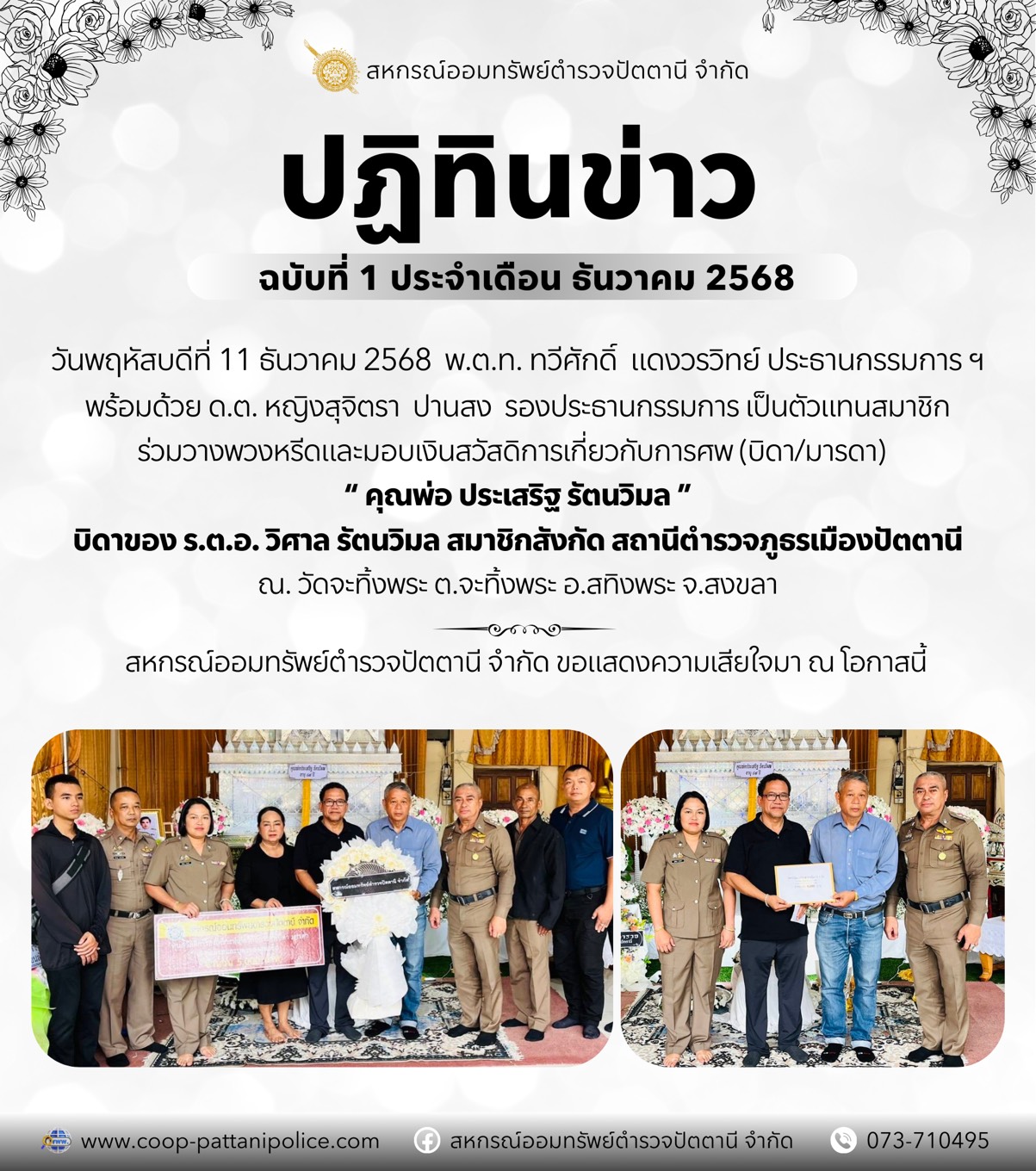 | 09 ธ.ค. 2568 | ประกาศ เรื่อง สหกรณ์ฯ แจ้งหยุดทำการ 1 วัน ในวันพุธ ที่ 10 ธันวาคม 2568 (อ่าน:15) | |